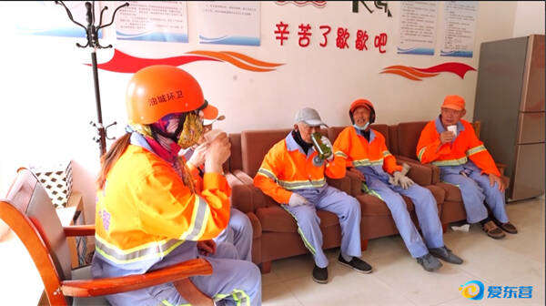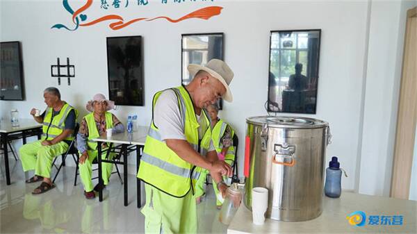 广饶县综合行政执法局设清凉休息点,为环卫工人送上清凉甘甜绿豆汤。
