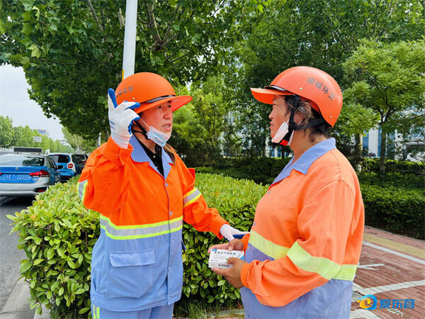 油城城服班组长张海霞将防暑药品送给有需要的班组成员,叮嘱他们到驿站休憩。