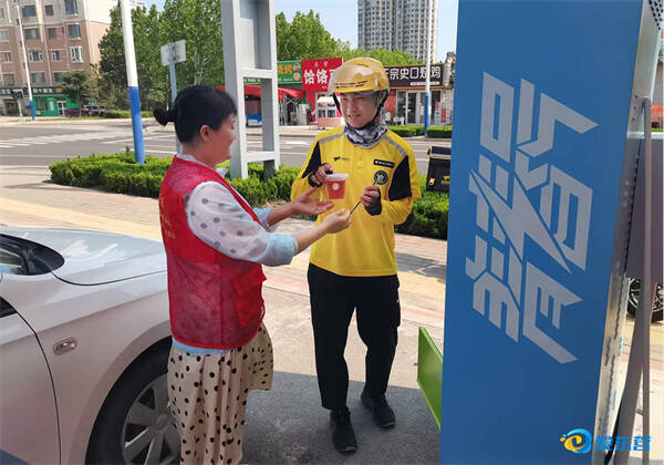丽景社区商圈工作人员送上防暑解渴酸梅汤,为新业态“小哥”“舒心度夏”送清凉。