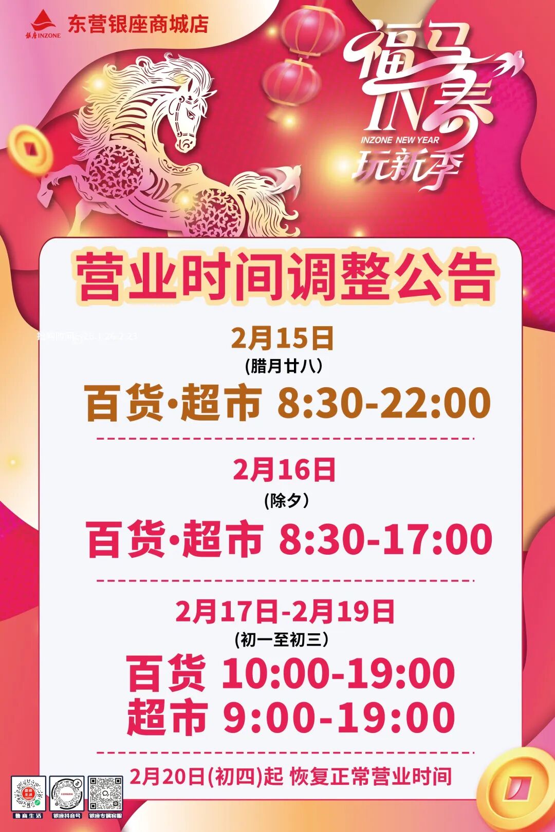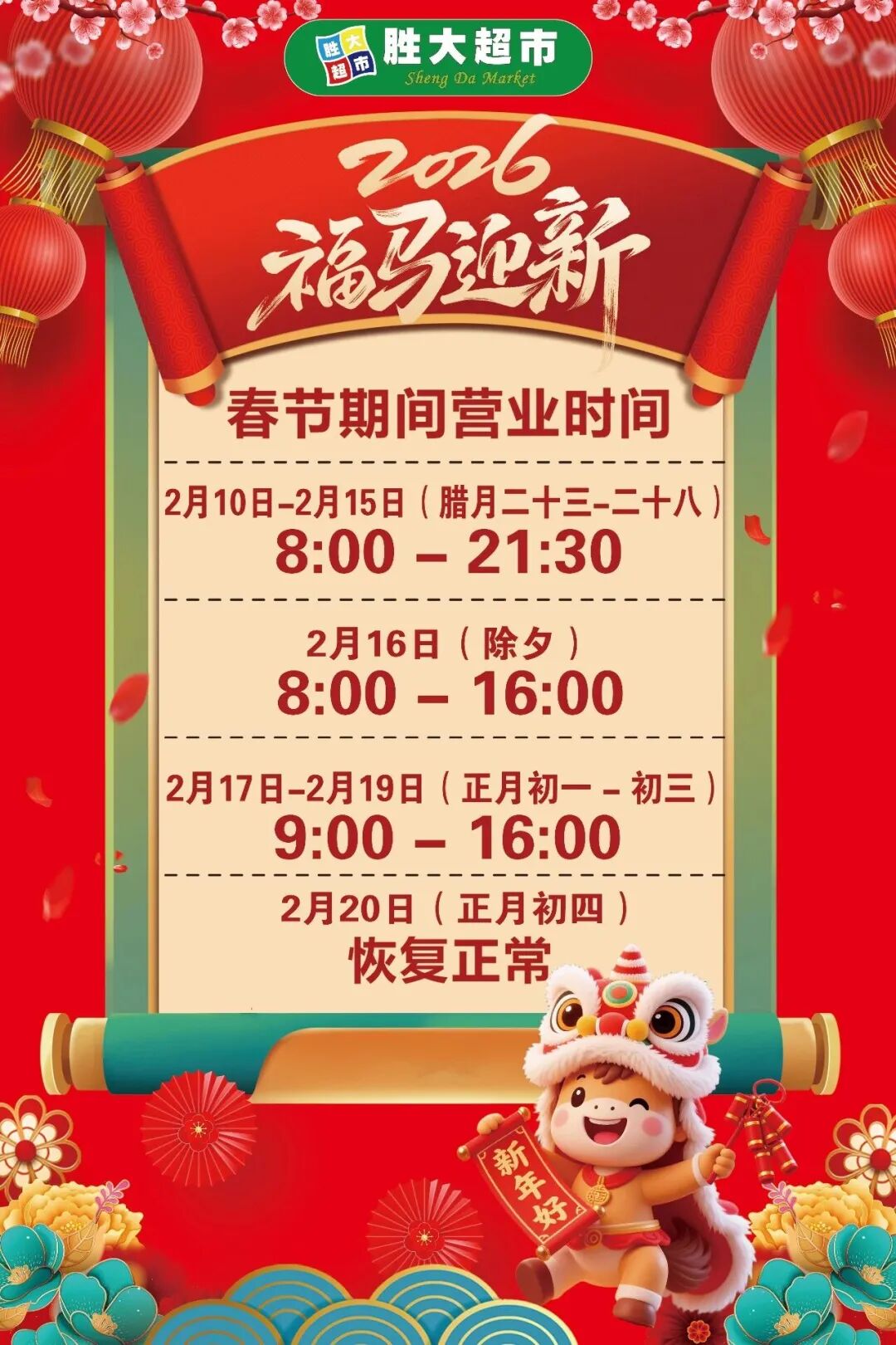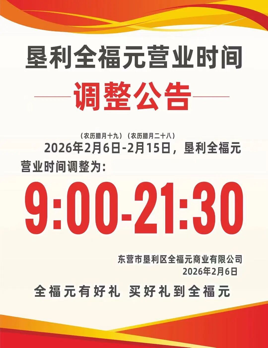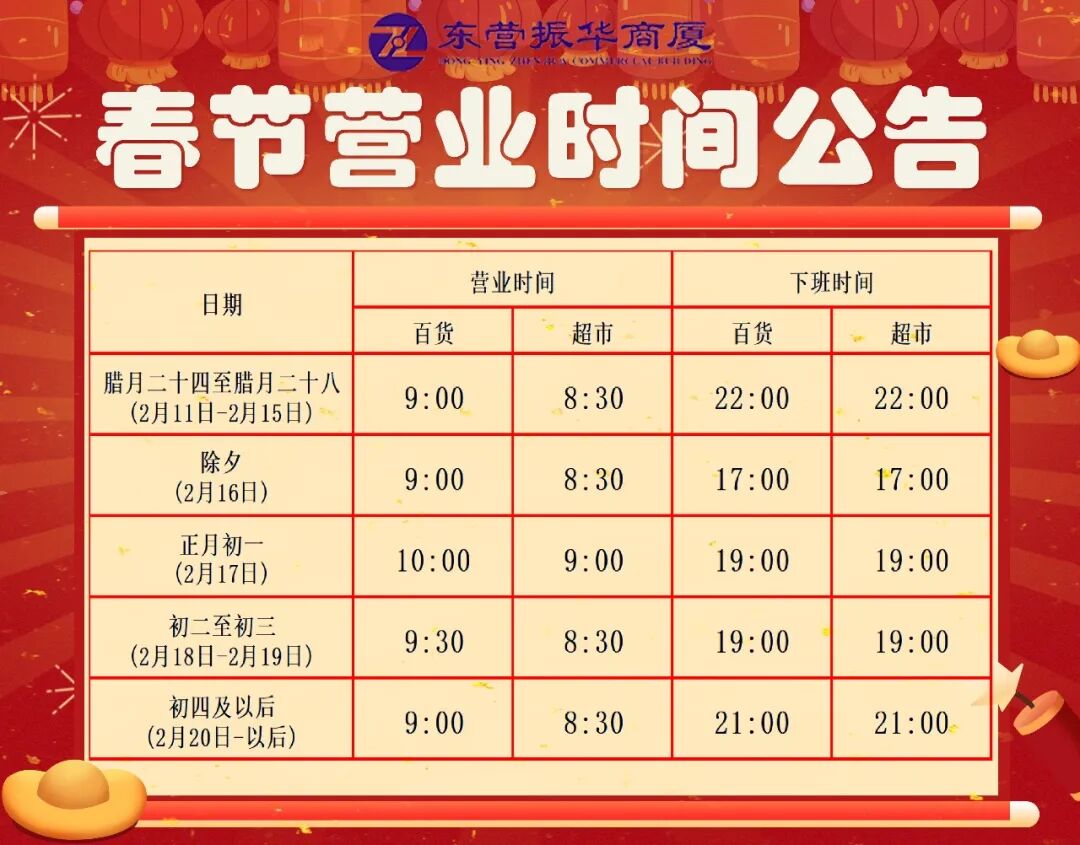 春节营业时间