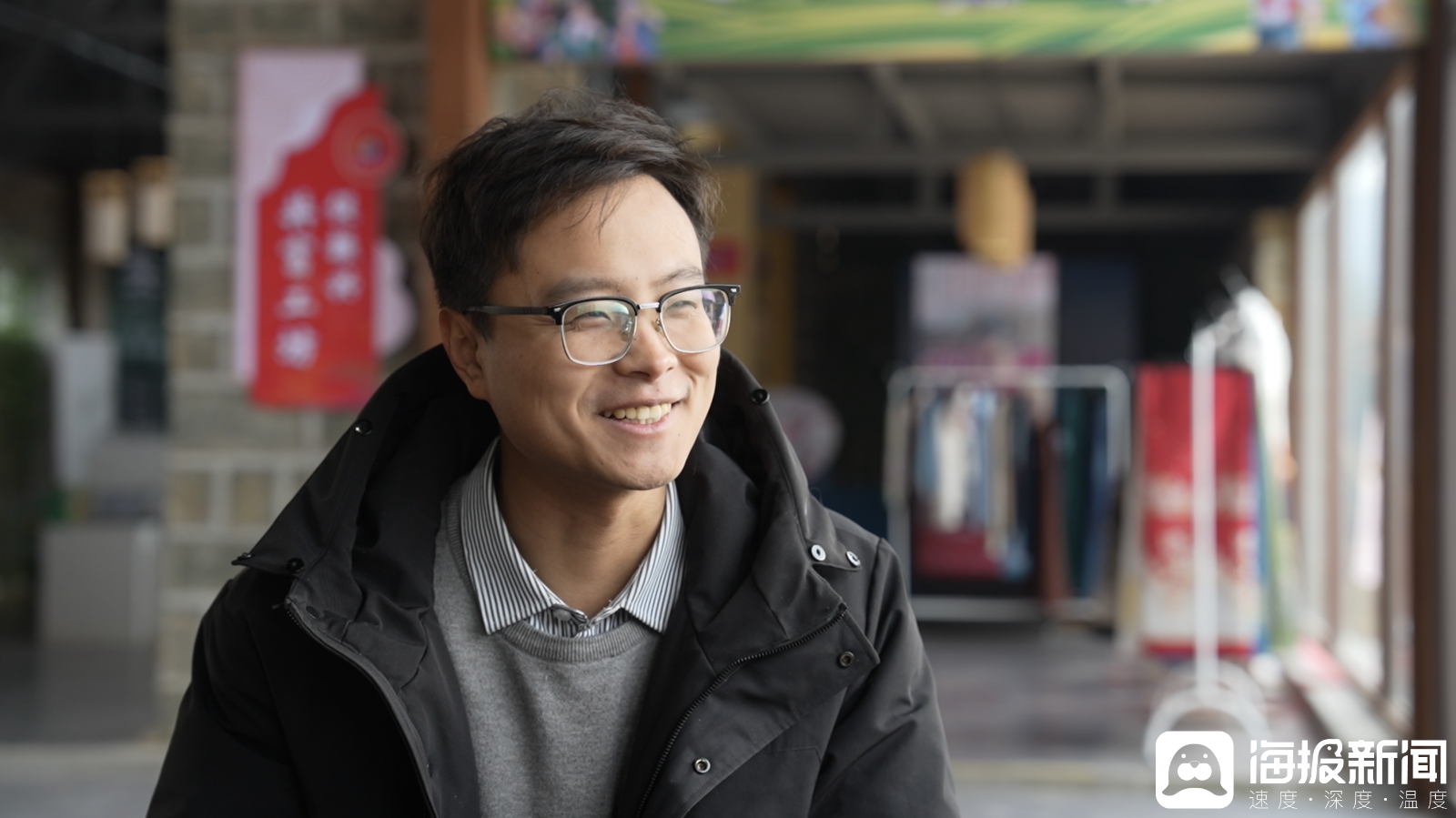2月10日,枣庄市山亭区徐庄镇藤花峪村党支部书记王浩接受海报新闻记者采访。