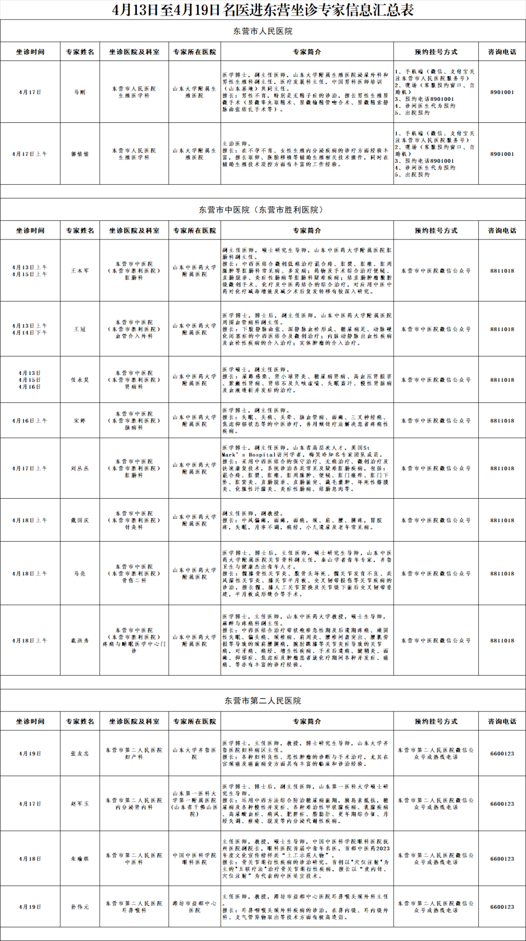 现将2026年4月13日至2026年4月19日市外名医来我市坐诊信息汇总并公布,有就诊需求的市民可关注专家信息及坐诊时间,提前电话咨询,按需预约就诊。